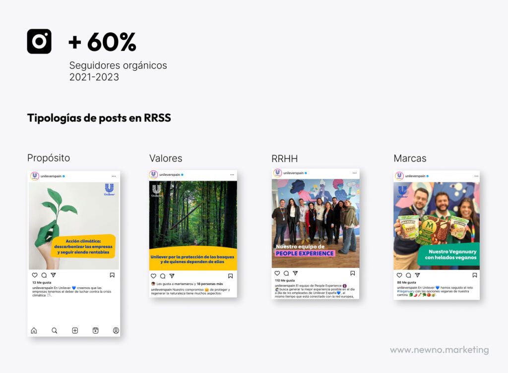 Este es el punto de partida desde el que comienza el trabajo, hace más de dos años, con Newno, creando y asentando las líneas de la estrategia de branding para España. Durante este tiempo se ha establecido una relación de confianza y colaboración, para alcanzar los objetivos de branding de Unilever y obtener un crecimiento orgánico enfocado en Instagram sin olvidar Facebook.