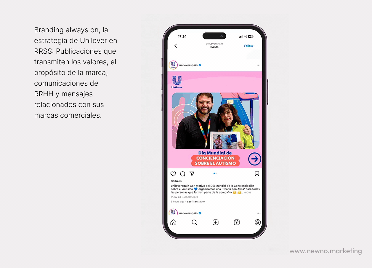 Como empresa que reúne un importante número de marcas, Unilever apuesta por estar presente de forma constante en las RRSS, trasladando sus valores, celebrando y poniendo foco en fechas clave y ejerciendo una función de altavoz para determinadas áreas de la empresa, con comunicaciones vinculadas a la cultura y la diversidad.
