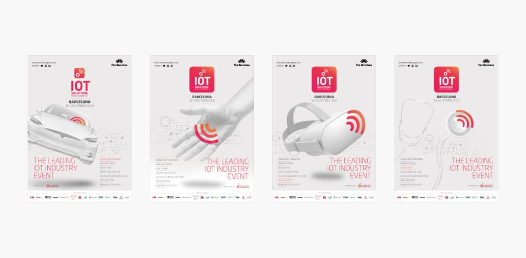 Para lograrlo, se optó por una línea de comunicación ferial muy flexible. Un concepto visual que implicase a IoT, pero que pudiera declinarse en cada sector o temática. Además, se incorporó un lenguaje icónico que refería tanto a la idea de “conexión” como a la de “cotidianidad” a través de un discurso que humanizara algo tan a priori técnico como es la tecnología IoT. Bajo el paraguas conceptual de “Because connection is everything” se realizaron múltiples declinaciones que apelaban a la omnipresencia del IoT en todos los aspectos de la vida empresarial y social.